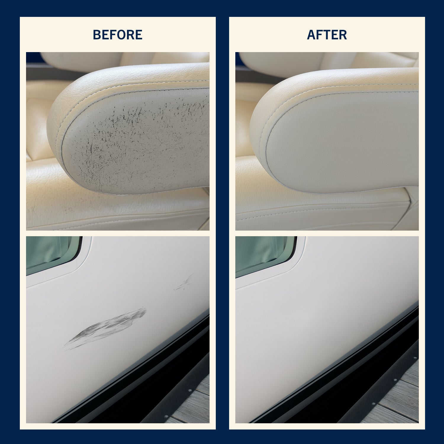 Each eraser is made from high-performance foam and features ergonomic finger cut-outs for better control while scrubbing. A textured white surface helps lift grime and grease more effectively, while the reinforced blue core resists crumbling—helping avoid the common issues seen with ordinary sponges. These pads clean using only water, so there's no need for bleach or harsh sprays. Whether you're tackling your seats, console, or rails, they serve as a safe and effective boat vinyl cleaner, boat interior cleaner, and even a gentle vinyl boat seat cleaner.